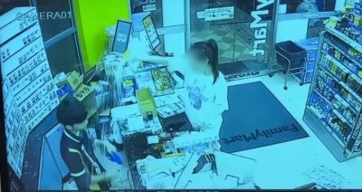 闹剧并未就此结束,趁店员拿起抹布清理时,女子转身拿来一罐啤酒放到柜台让店员结账,接着她未离开,而是当场大力摇晃啤酒罐后打开,朝店员喷洒啤酒,还将空罐扔在柜台上,她才转身离开。