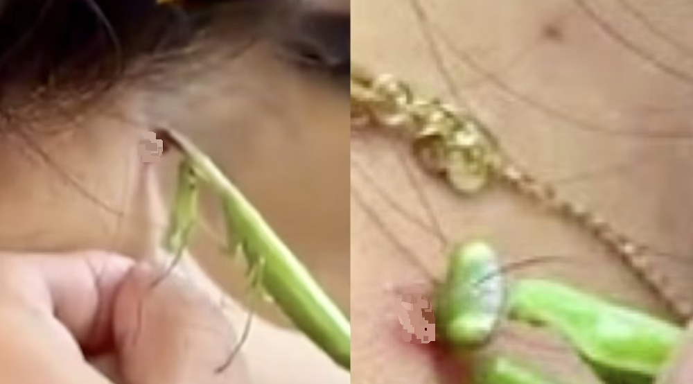 女子随手抓住螳螂 放后颈吃疣:像针扎