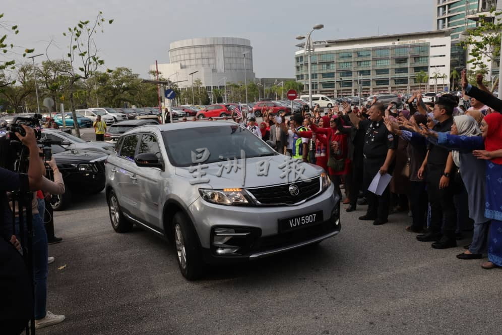 载着纳吉的宝腾休旅车在警车开道护送下,于早上8时40分直接驶入法院停车场,全程未作停留,让聚集在外的支持者无缘与其当面打招呼。