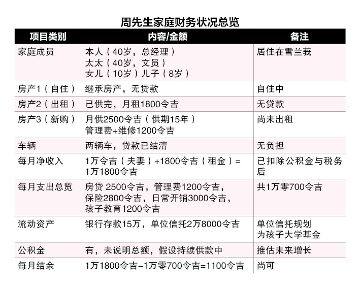 这意味着家庭现金流非常紧张,一旦房产3延迟出租或房产2短期空置,每月将出现约1550令吉赤字,长期恐影响储蓄、应急金,甚至影响子女教育与退休规划。