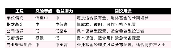 以上的组合适合大部分的人生投资,若你追求更高收益,且能接受较高波动与较高流动性带来的风险,可少量配置以下进取型投资工具: