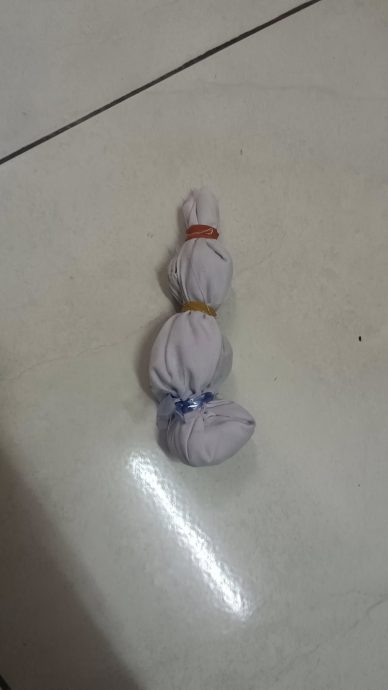 (八打灵再也17日讯)一名父亲在家发现一个看似“包头僵尸”(pocong)的神秘物品,差点以为有人对家里施巫术,但原来那只是孩子的美术课作业,让他哭笑不得。