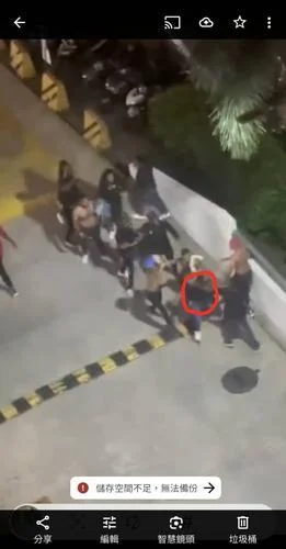 社媒流传隆市十五碑地区发生群殴案,可见1名男子(红圈)遭一群人殴打。 (视频截图)