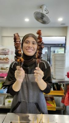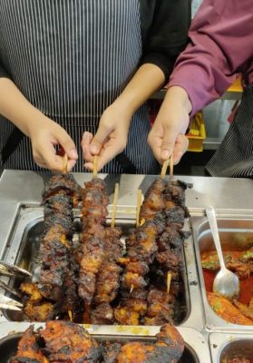 Kak Ar Kelate餐馆的巨无霸牛肥膘烤串,烤得金黄焦黑,香气勾人魂魄,每一口都是热量炸弹。