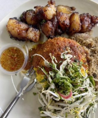 最受欢迎的吃法是把牛油渣加在青叶饭(Nasi Kerabu)里,丰腴脂香,瞬间平衡了香草蔬菜的苦涩辛呛之味,青叶饭也摇身一变,从乖宝宝变成不是那么乖、有一点点反骨的小魔头!