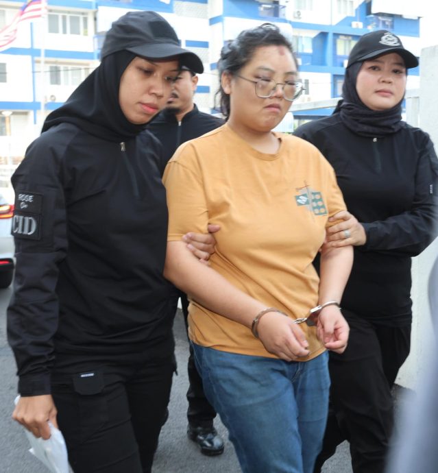 24岁嫌犯穿着橘色上衣和蓝色牛仔裤,双手被拷上手铐,于早上9时18分被押抵加影法庭。