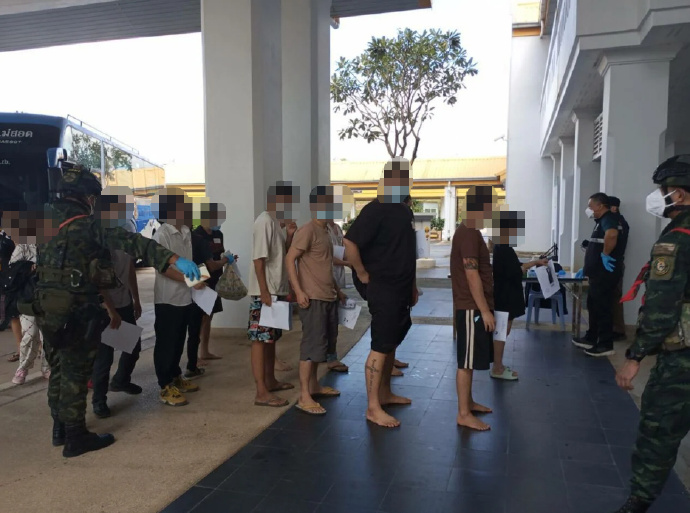 泰方出动4辆巴士分两趟前往妙瓦底将94人接回泰国达府湄索县泰缅第二友谊大桥办事处。中方执法部门对嫌犯身份逐一核查,录入生物识别信息,并将他们列入黑名单。