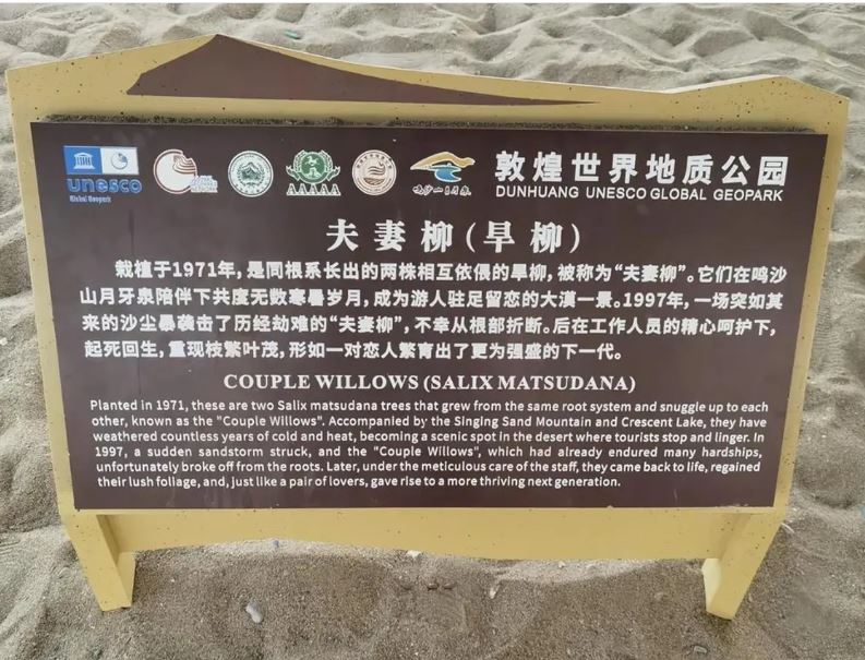 据介绍,此次被风吹断的夫妻柳属于旱柳,栽植于1971年,是同根系长出的两株相互依偎的旱柳,被称为“夫妻柳”。它们在鸣沙山月牙泉的陪伴下共度无数寒暑岁月,成为游人驻足留恋的大漠一景。