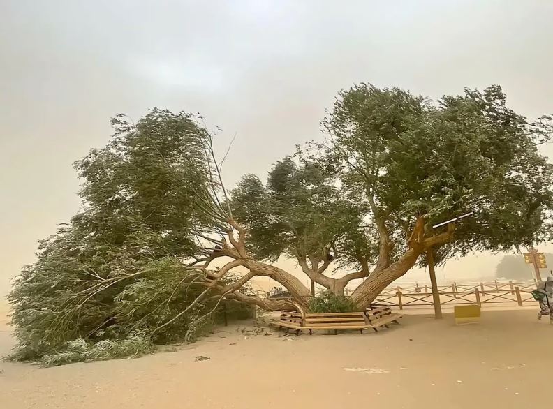 敦煌月牙泉“夫妻柳”遭沙尘暴吹断 网民:离婚了