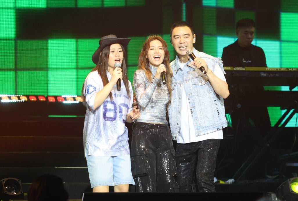 女儿锺懿近来活跃于中国综艺节目,此次也惊喜登场,,与阿B合唱她曾在节目中演唱过的经典曲目《龙的传人》,重现标志性的戏腔,引来观众喝彩。阿B温情陪唱,更笑说女儿是他“最珍惜的奖”,尽显慈父宠爱。锺懿更在台上连唱《假如我是真的》、《Hopelessly Devoted to You》和《小镇姑娘》3首歌曲,展现实力。