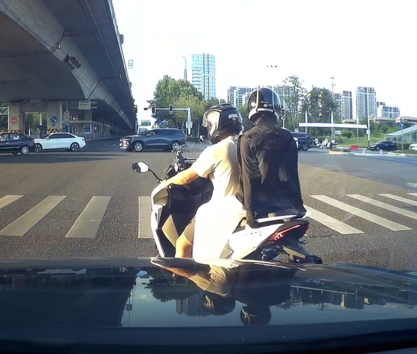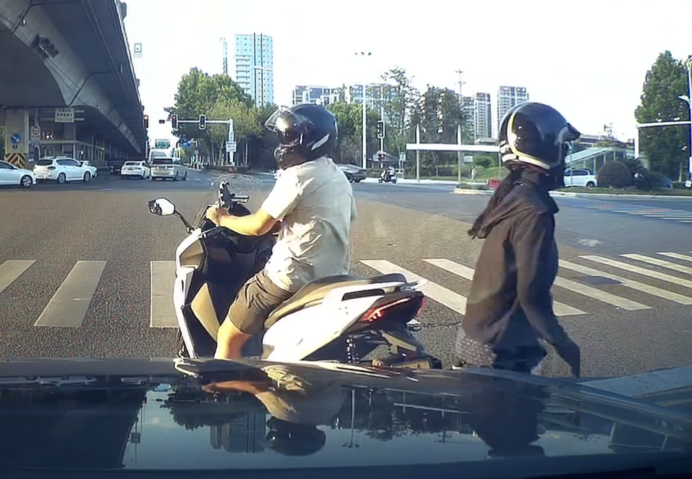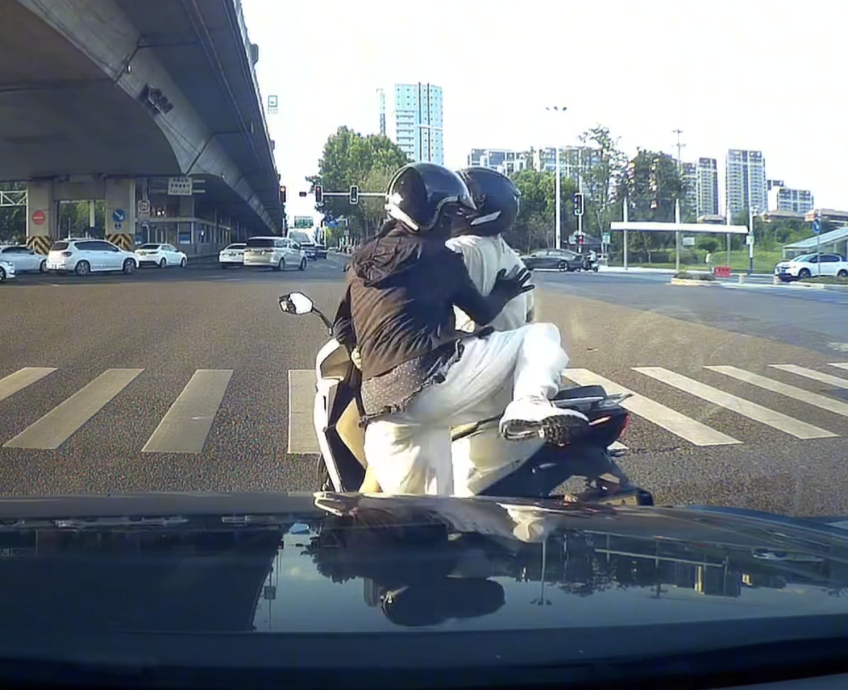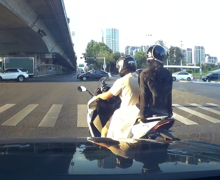 画面显示,这名男子骑著摩托车,在南部一个路口等红灯时,不断催油门、急刹车,导致坐在后座的女子身体重心反复前倾,疑遭刻意“吃豆腐”。