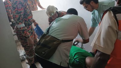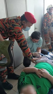 (八打灵再也26日讯)一名10岁华裔男童今日中午从公寓7楼坠下,幸运的是,他掉落在6楼的走廊外墙处,被及时赶到的消拯员救下,保住一命。