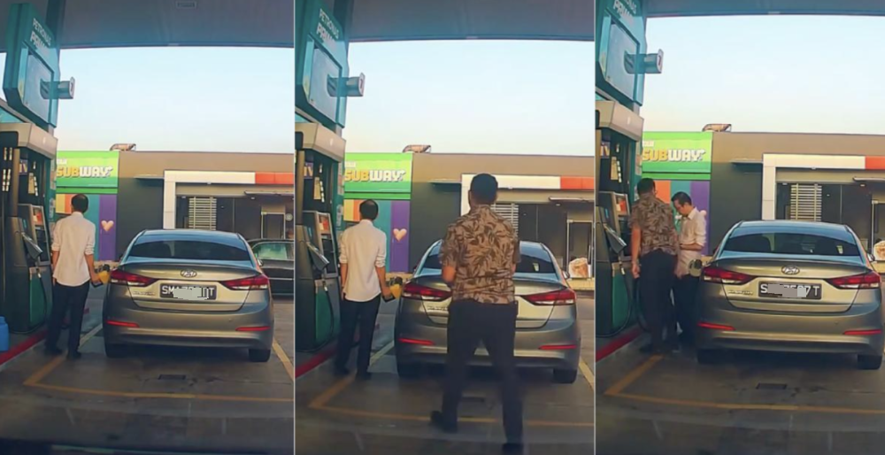 从男子开口劝告,到新加坡车主乖乖拔掉油枪,过程不到10秒。男子甚至还伸手操作油机,疑似直接取消交易,令车主无奈停手。