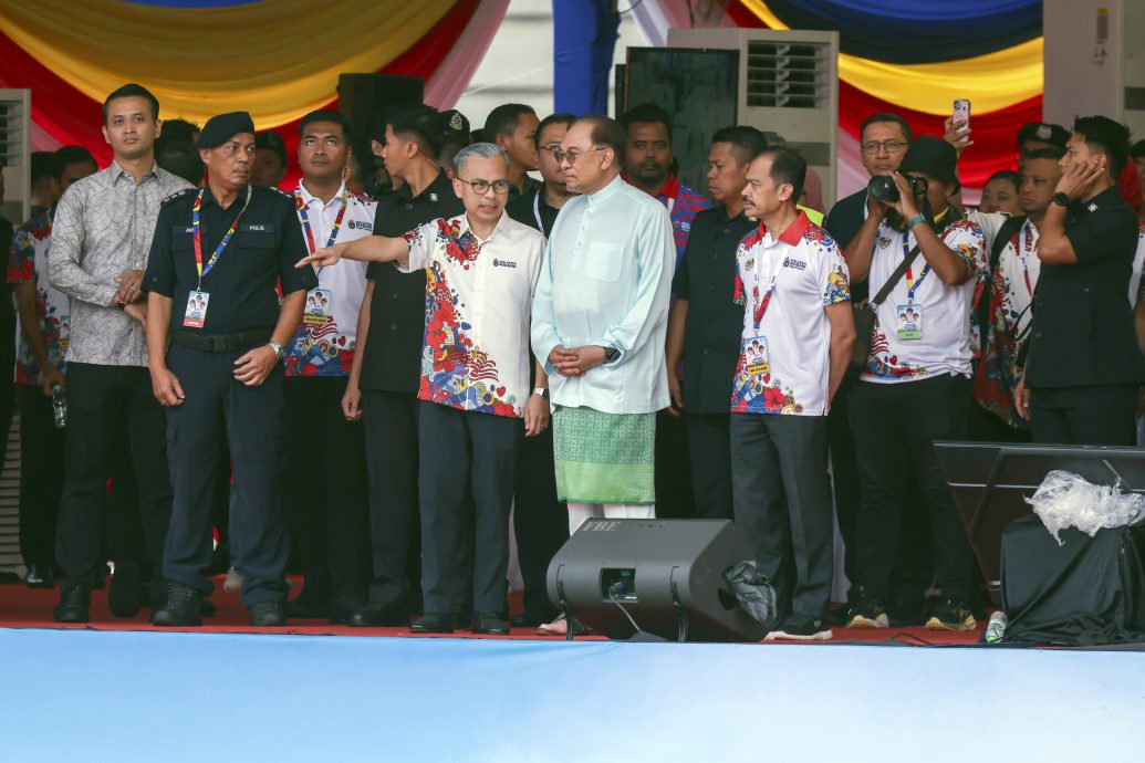 随后,安华在通讯部长拿督法米陪同下巡视彩排情况,并聆听庆典流程简报。