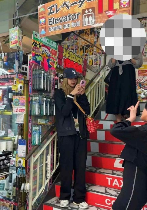 从曝光的照片可见,Lisa身穿黑色宽松外套,内搭小可爱若隐若现,头戴深蓝色棒球帽,金色中长发自然散落,肩上背着鲜红印花包,手里拿着粉色手机专注拍照。她站在霓虹灯林立的楼梯口,整体造型随性又性感。有趣的是,当时照片只拍到裤子上的一个“逼”字,随即引来网民好奇。