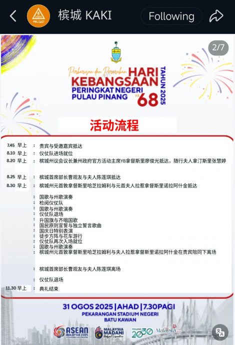 大北马社区报记者联络刘子健时,他表示在本身认知的范围里,州政府没有付费让其他社媒协助宣传槟州独立日庆典,也没有把流程表翻译成其他语言。
