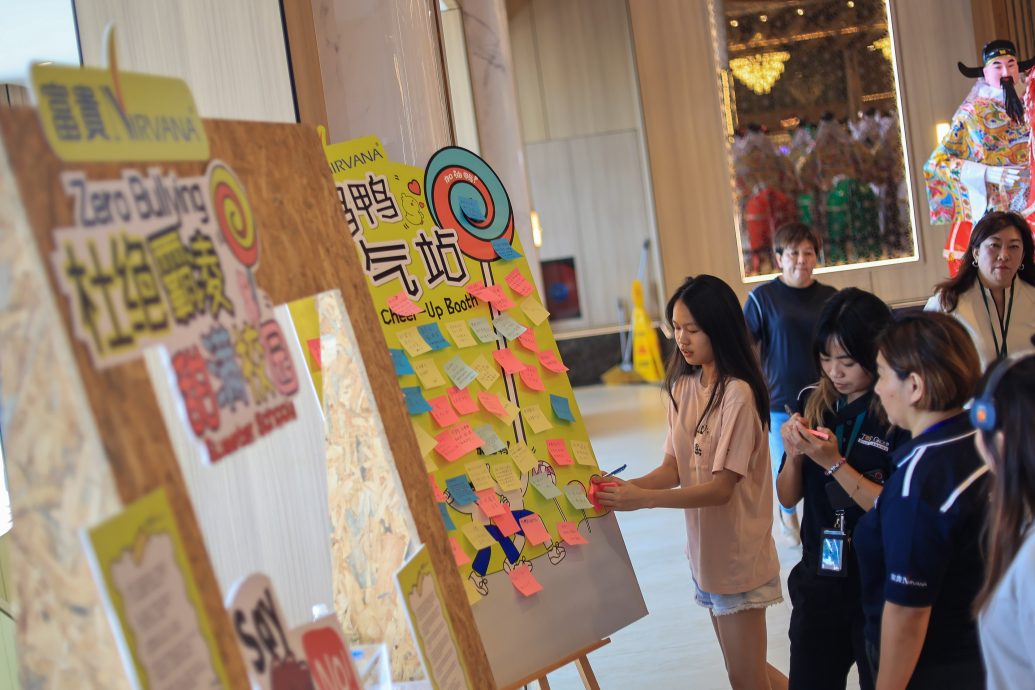 文告说,富贵集团的志工们在活动中派发象征美好童年的棒棒糖,寓意“校园多一分甜,就会少一份霸凌”。