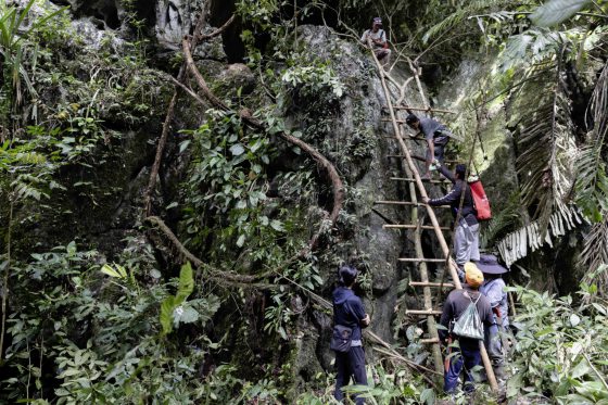 在短短3天时间内,我们一共走访了3个洞穴。它们虽然都在现今特米亚族部落附近,但部分入口处极高,必须依靠原住民朋友当场砍树头、搭建梯子,我们这些“城市人”才能攀爬而入。