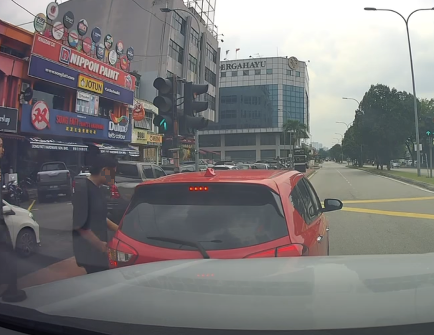 根据行车记录仪画面,涉事Myvi在红灯转绿后,仍停留在黄格子范围内等候乘客上车,导致其他车辆无法顺利通行。
