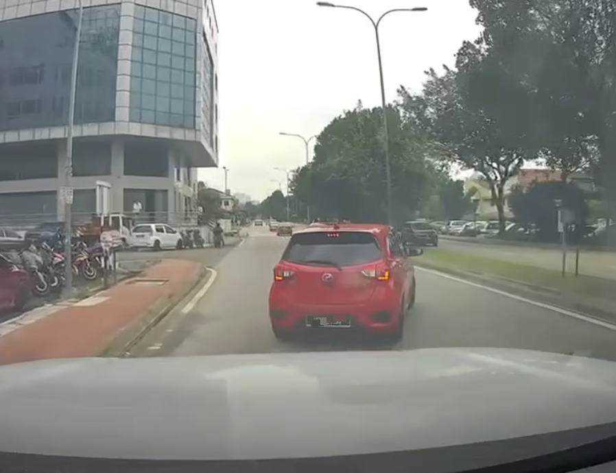 (吉隆坡1日讯)一辆Myvi轿车不但违规停在黄格子区接载乘客,遭后方司机鸣笛后竟还不断刹车挑衅,差点引发追尾事故,引起网民热议!