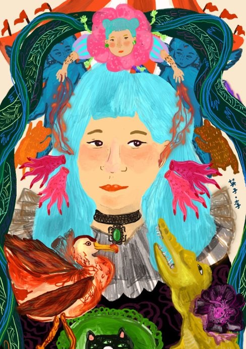 回看往年的自画像里都画满了我喜欢的事物。圣诞树、Power Rangers、哈利波特、罂粟花。今年的自己更加喜欢哥德式黑色氛围,但其实内心的马戏团里还是那个头上绑着两颗丸子的开朗精灵。