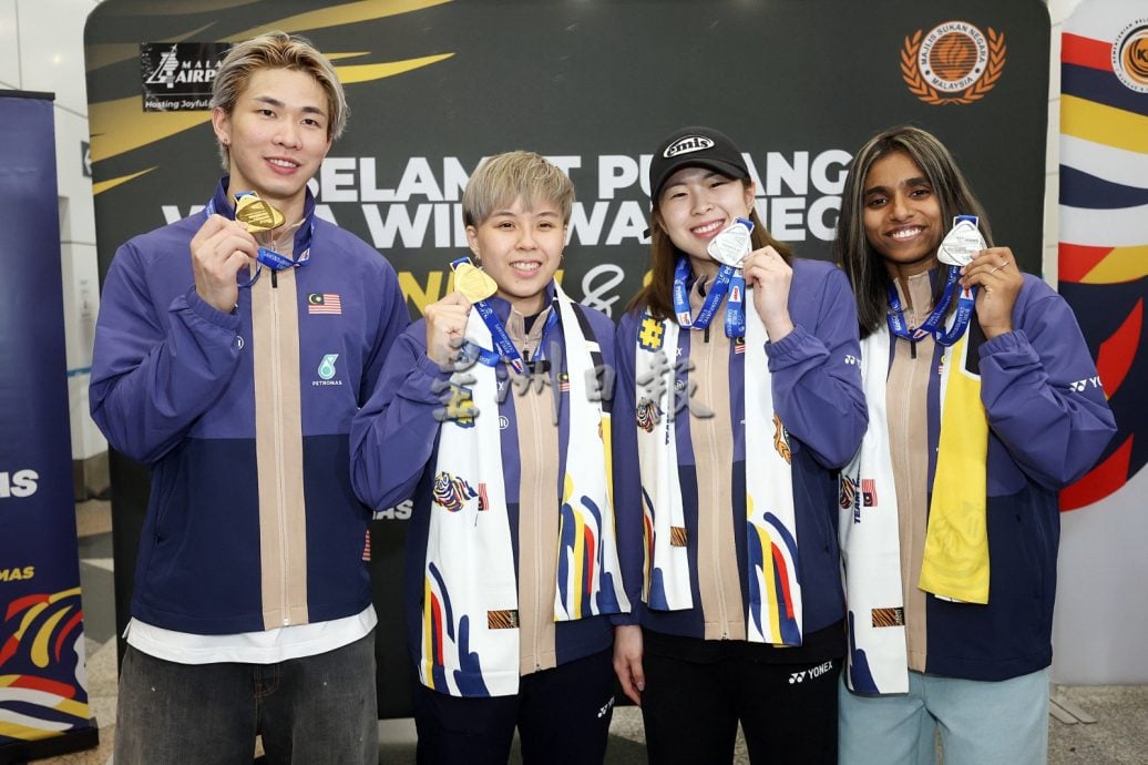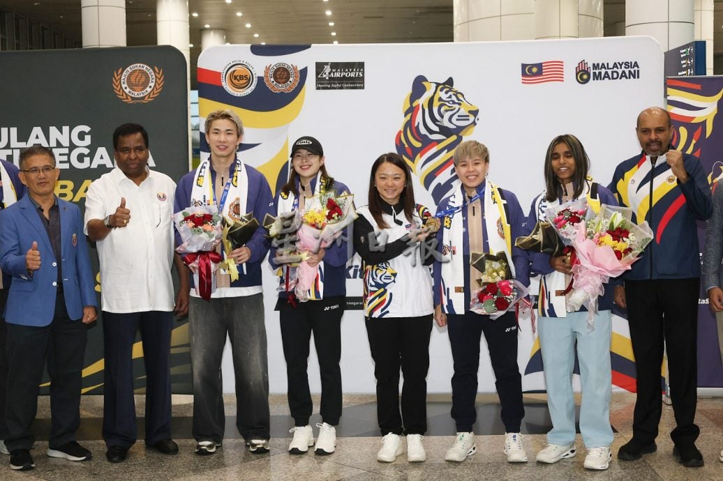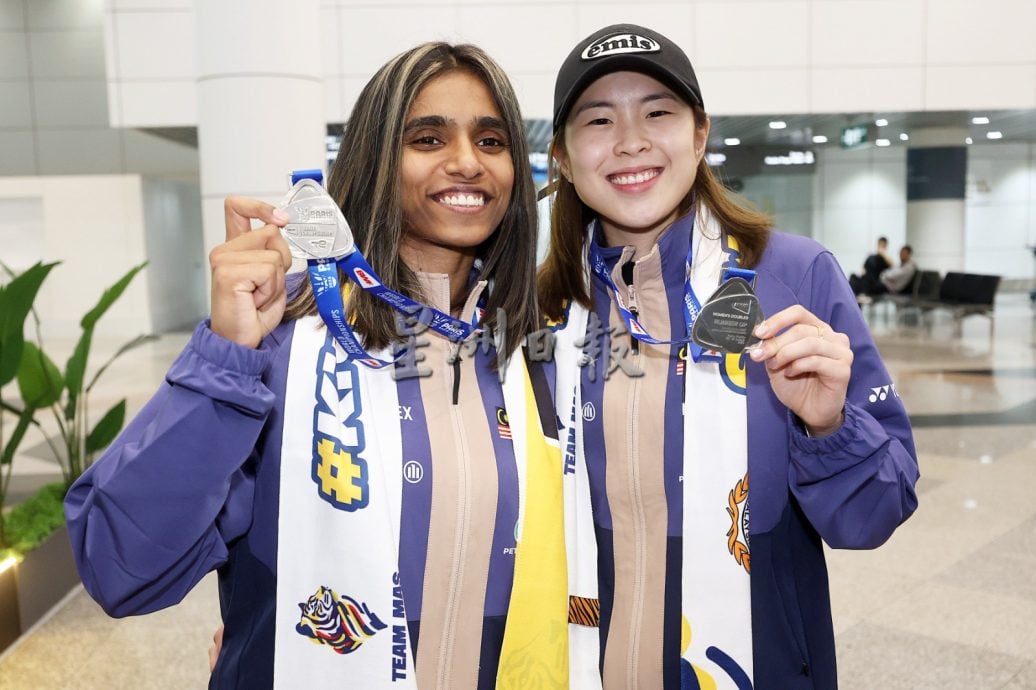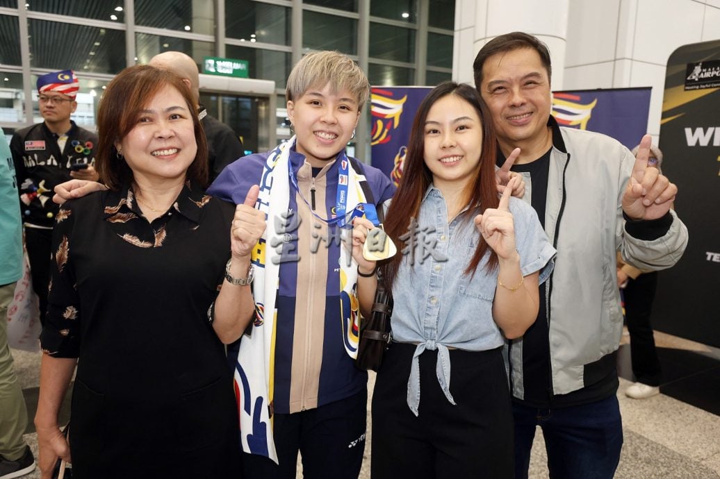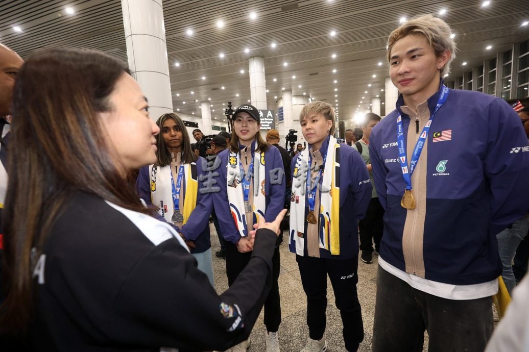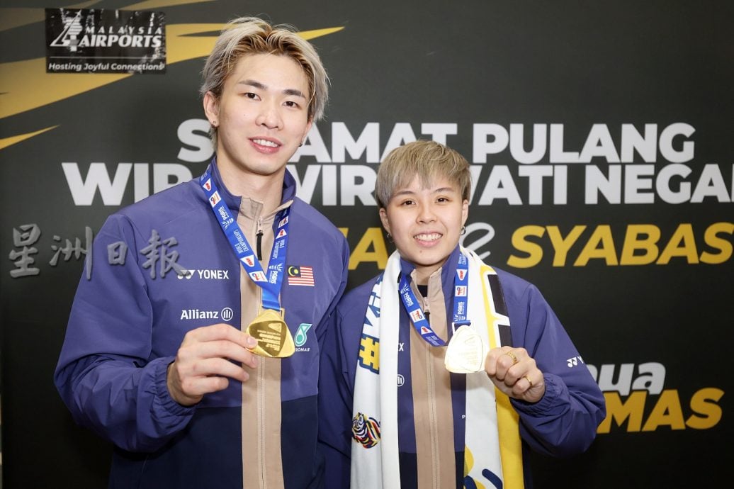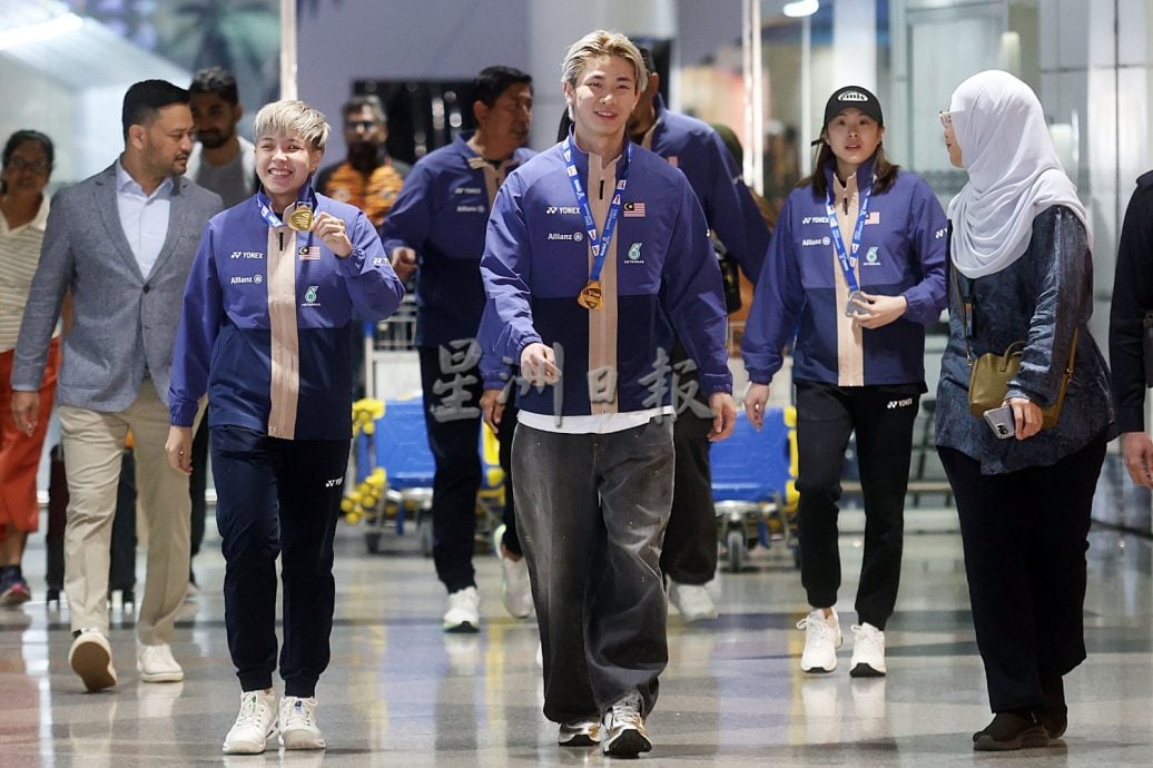 (雪邦2日讯)大马羽球队在巴黎世界羽球锦标赛创历史夺得混双世界冠军和女双世界亚军,大马国家羽球队混双“杰蔚组合”陈堂杰与杜依蔚及女双“乐蒂组合”陈康乐与蒂娜联同教练们今日载誉归来,获得青体部、大马奥理会、国家体育理事会、大马羽总、媒体及球迷在机场盛大迎接国家英雄归来。