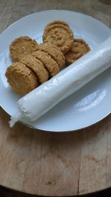 Kuih sagon的做法很简单,空锅小火,把粘米粉炒至轻盈,嫩椰丝也同样用空锅小火炒干水分,二者混在一起,加糖和少许点盐调味即成。
