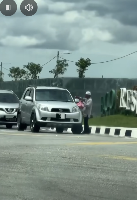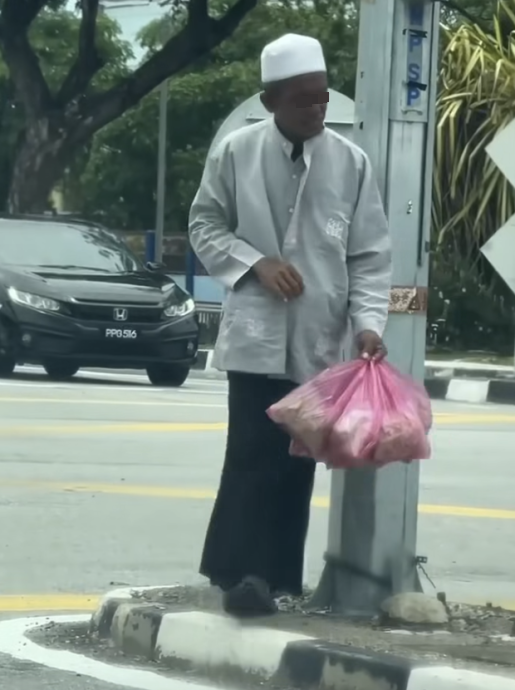 据悉,老伯每天都会在柏淡一间油站前的路口,提着沉甸甸的鱼饼,向经过的车主兜售。