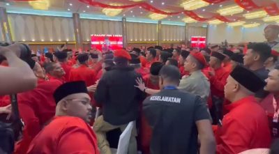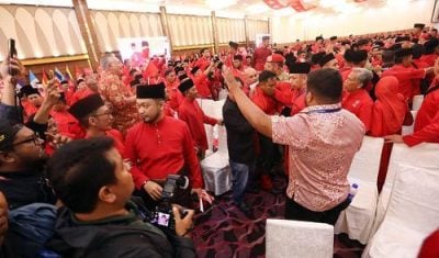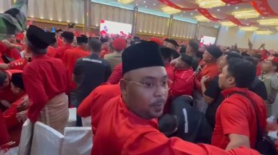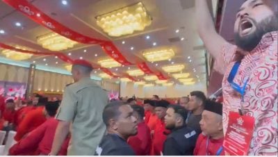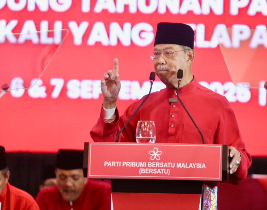 (沙亚南6日讯)国盟兼土团党主席丹斯里慕尤丁今晚在2025年第8届土团党代表大会开幕仪式上,原本正进行政策演词,却因一句“有人收集签名要推翻主席”掀起全场轰动,瞬间引爆党内矛盾和紧张氛围!