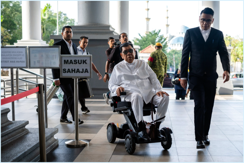 现年74岁的阿布沙希今日坐着轮椅,在吉隆坡地庭,被控以4项刑事失信及13项洗黑钱罪时,在庭上表示明白所有的控状,并否认有罪。
