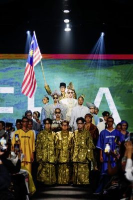 再有大马唱跳组合3P身穿以具本地特色Songket布料的军装造型走秀,还配戴了一般用来搭配Kebaya的饰物,各种不同元素的融合,成了最具大马特色的造型。2020年马来西亚环球小姐Francisca Luhong James,父亲是达雅乌鲁族的族人,母亲则是伊班族,这一次更展示了融入了婆罗洲民族特色的服装设计。