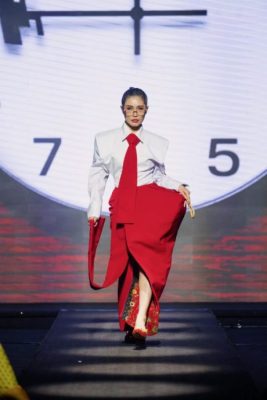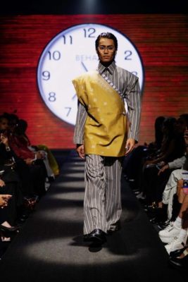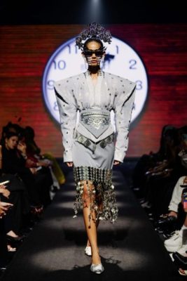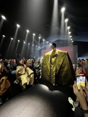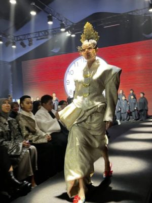 在时装周的最后一场服装秀上,BEHATI的秀场把大家带回校园,由大马名模谢丽萍Amber Chia作开场秀的模特儿,手执教鞭以老师的造型惊艳亮相。后续上场的还有获得2024年Miss Charm后冠的Rashmita,展示的服饰在色彩上便是大马人熟悉的女生中学校服配色,超大的裙摆若细看则是件巨型的西装外套。另外就连运动服也上场了,完整的体现“校园风”的概念。