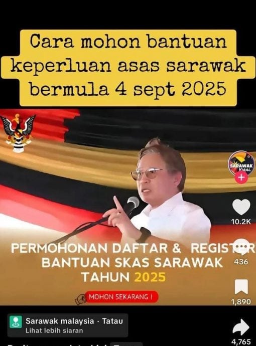 砂政府强调,所有与SKAS援助金相关的官方信息、注册程序与公告,仅可通过官方网站(sarawak.gov.my/skas)及UKAS旗下社交媒体平台获得。
