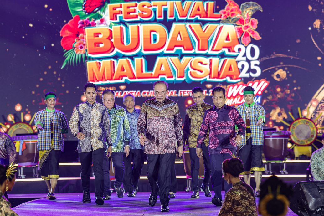 安华今晚在蒂蒂旺沙湖滨公园为2025年马来西亚文化节主持开幕,在致词时指出,这场盛会不仅展现马来西亚的卓越,也彰显国家文化多样性的力量。