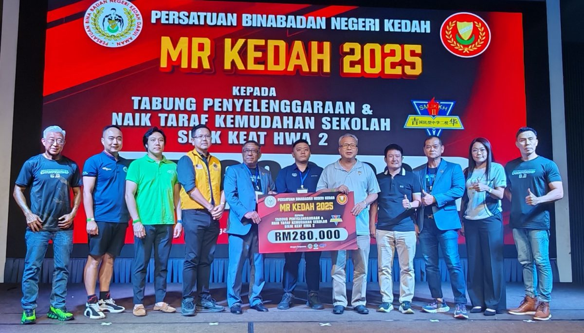 此外,吉打州健美协会会长拿督莫哈末扎亚移交28万令吉的模拟支票给吉华二校董事长拿督威拉蔡德兴,由工委会财政林华荣陪同。