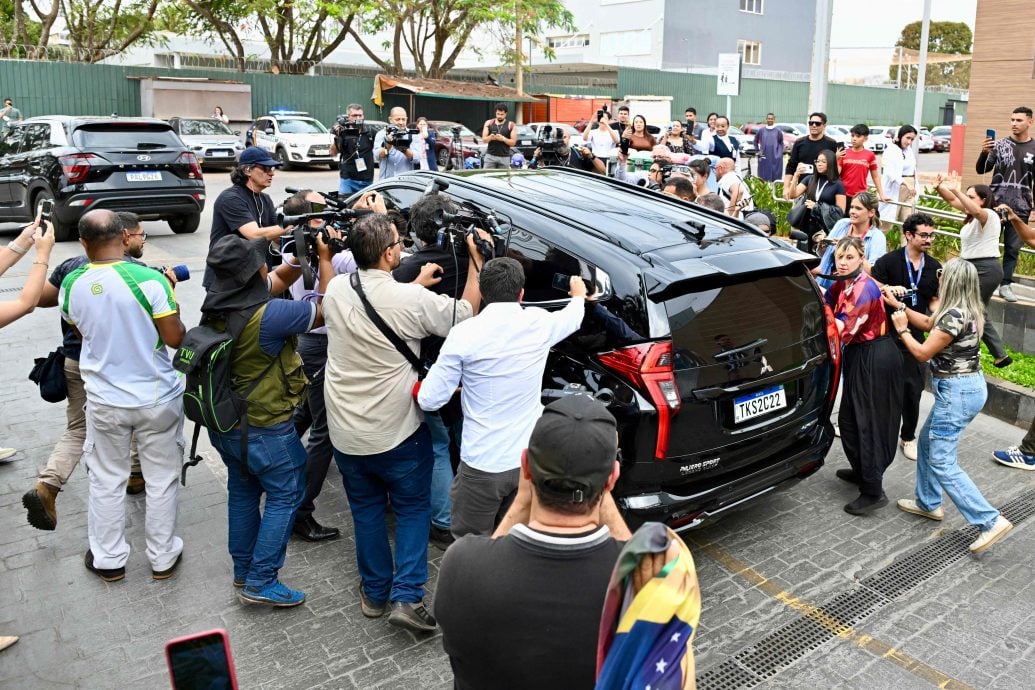 车子载着博尔索纳罗驶离医院时,一众记者和支持者涌上包围。(法新社照片)