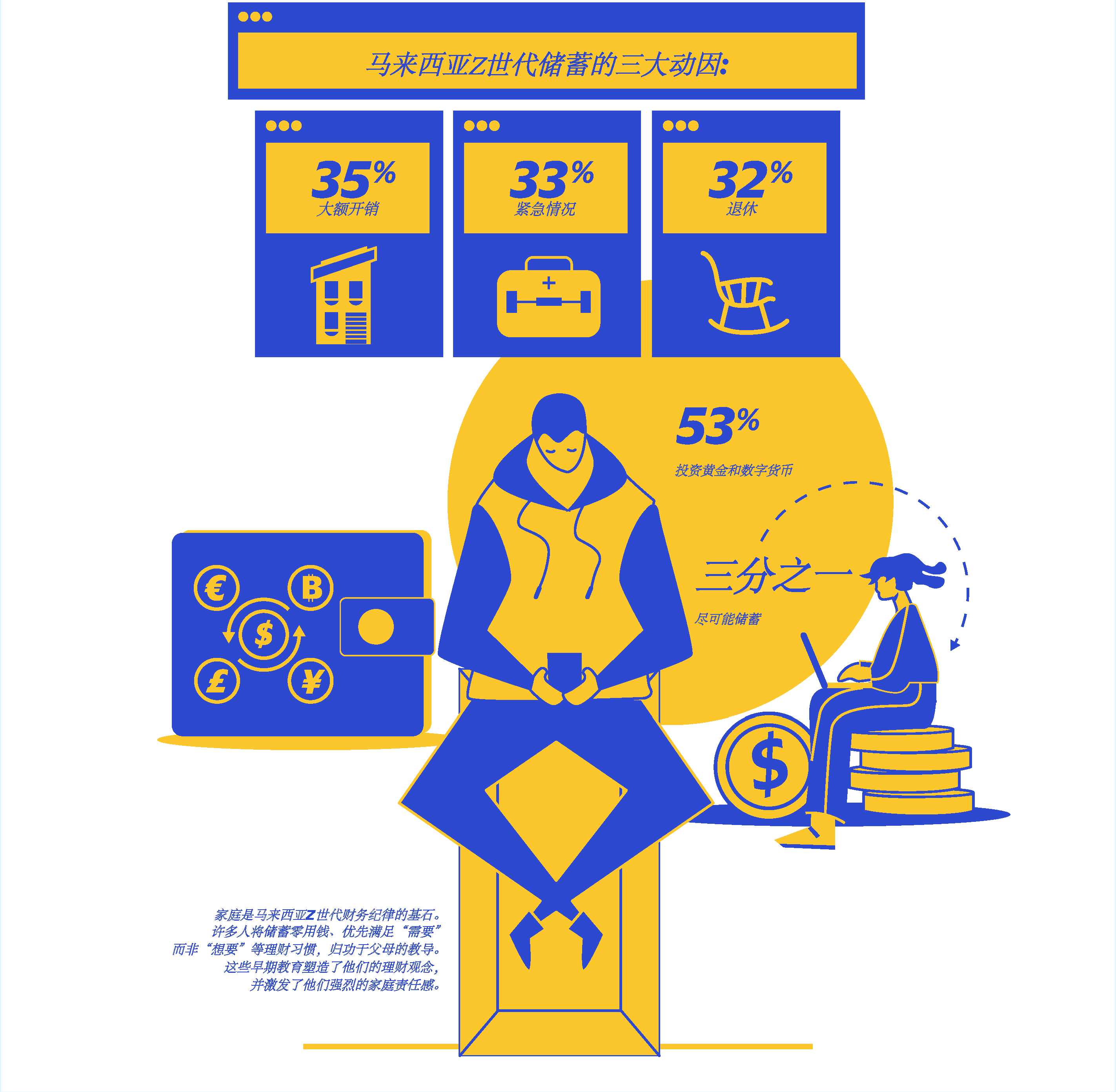 “尽管年纪尚轻,许多人已开始为未来做准备。35%为主要支出存钱、33%设立应急基金、32%进行退休储蓄。值得注意的是,Z世代有53%在投资黄金和数字货币,显示他们对另类财富工具抱持开放态度。”