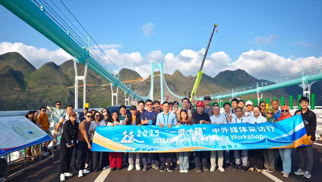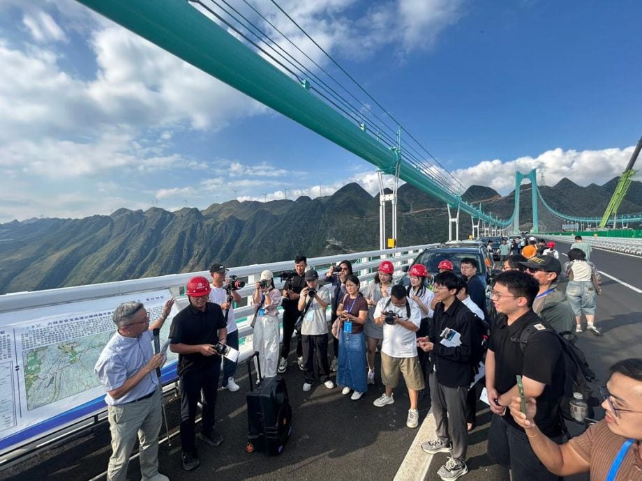 人民日报社主办的2025“一带一路”中外媒体团因缘际会,受贵州交投集团之邀进行考察,成了大桥临近启用前第一批登桥的访客。