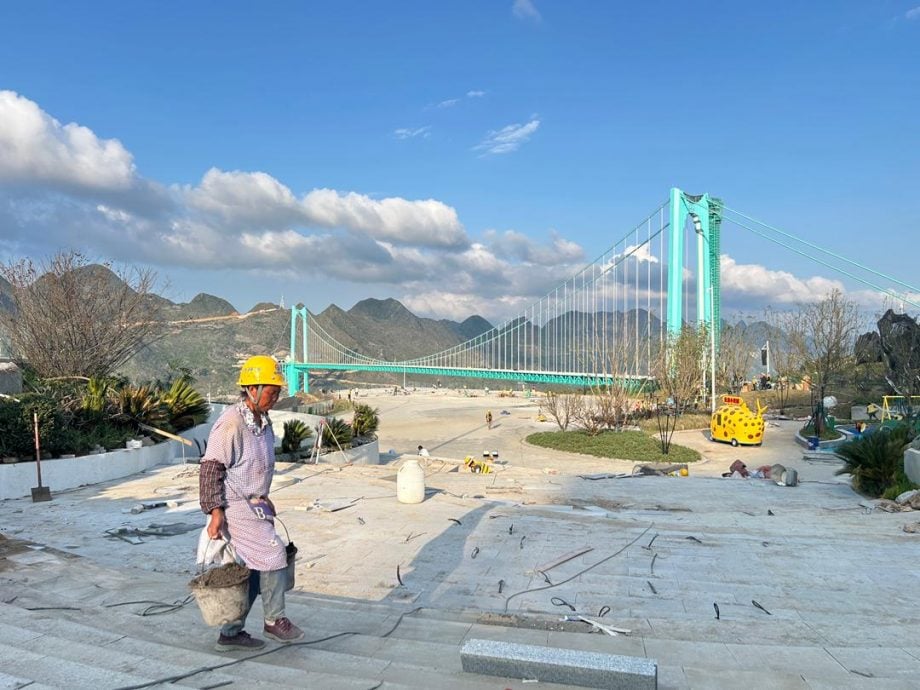 伴随着历时近4年建设而成的花江峡谷大桥,是可让游客远眺大桥与花江峡谷的云渡游客服务中心。据现场所见,员工都在忙着最后的铺垫工作,以期赶迎一个星期后的通车仪式。