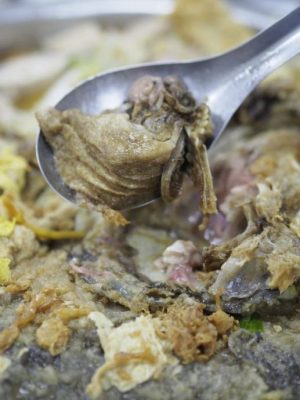 在我最喜欢的大马食物里,在前五名,酥炸过的鱼块外层仍保有油炸的香酥,而经由高汤煮过后,又包覆一层薄薄的高汤,且不至于干硬。汤头会加入番茄跟酸菜,用天然酸气平衡腻感,是相当美味的食物。歌手车志立曾经在台北开设马来西亚鱼头米专门店,可惜没多久就因故歇业,在那之后,台湾人就没什么机会吃到鱼头米了。