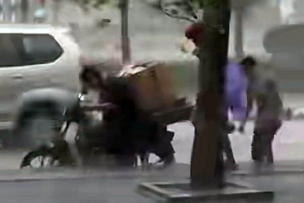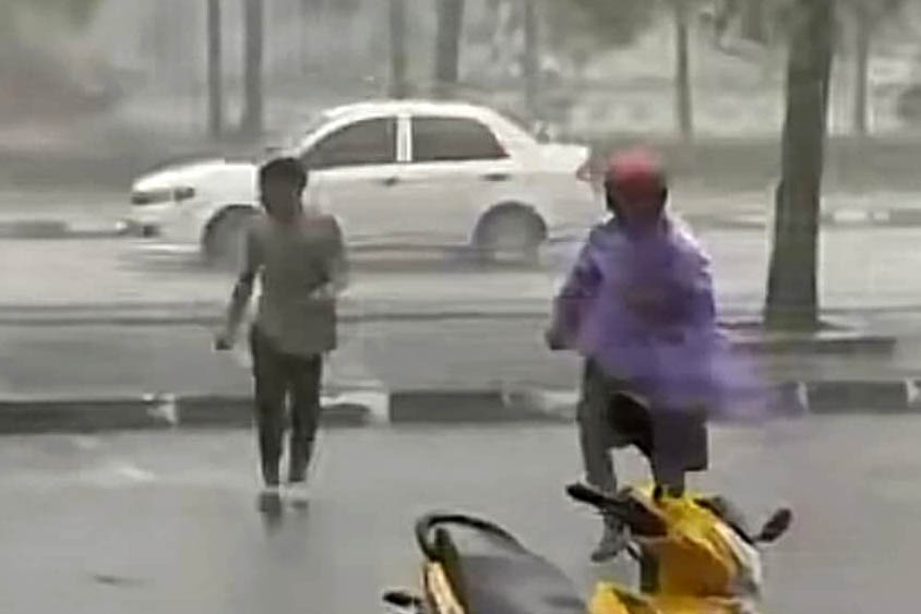 (大山脚26日讯)不忍心见到骑摩托车长者顶着狂风暴雨躲在树下,2名年轻人毫不犹豫冒雨协助陌生长者脱困,还邀请后者到工作的手机店里避雨,其中一人较后把帮助长者的视频上传到社交媒体,观看人次两天内突破130万,网民更是留下正能量的鼓励语气,特别赞扬2名年轻人的救助精神。
