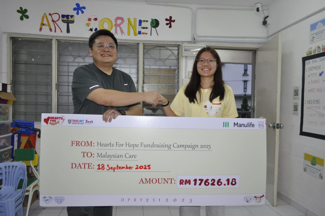 9月8日至12日,“Hearts for Hope Fundraising Campaign 2025”在吉隆坡总校区 The Rimba 举办,共筹得1万7626令吉的善款,并全数捐赠予文良港翠湖园的马来西亚关怀协会旗下社区关怀资源中心。这份心意,载满拉曼理工大学公共关系专业二年级55名学生的心血,更重要的是,为他们的大专生涯,画下了一个美好的成长印记。