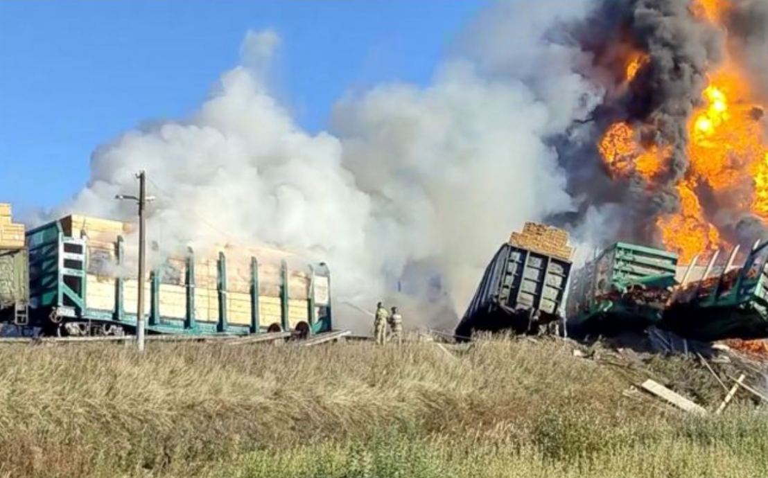 俄运油列车和卡车相撞 脱轨爆炸浓烟窜天际