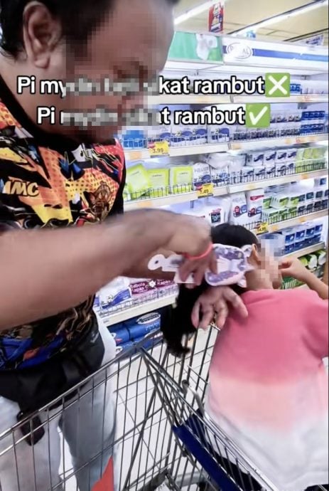 (八打灵再也28日讯)秒变家庭梳妆台?一对夫妻带着孩子逛超市时,竟随手从货架上拿起全新替孩子梳头,甚至还大方拍片上传社交媒体,荒唐行为立刻引发热议!