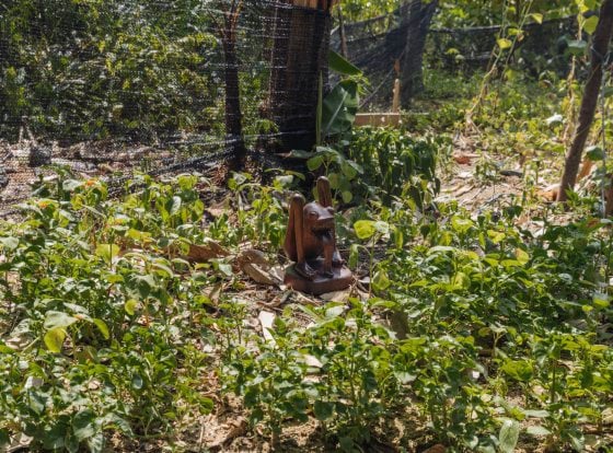 后来,我们又拍摄了一位嘉户族男子制作Bès Pintu Katak(门蛙恶灵)的雕像。据说它常栖息在森林里的小溪边,那里布满碎石,还会渗出红色的液体。