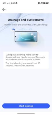 万一意外进水或掉进粉末,可以打开“排水除尘模式”,手机会发出声音和震动,30秒内把残留在扬声器的水分和灰尘震出来。不过要注意,此模式不包括Type-C接口,所以要手动清理。