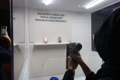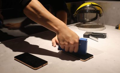 相比上一代,新机有三大杀手锏,那就是防摔、防水和续航力。为了展现它的实力,在发布会上,HONOR直接上演一连串极限测试,让媒体记者随意“折磨”新机,比方说用工业钉书机钉屏幕,或手持气动钢钉枪疯狂射击屏幕。结果,当工作人员把手机递到我眼前时,屏幕毫发无损,仿佛什么都没发生过。