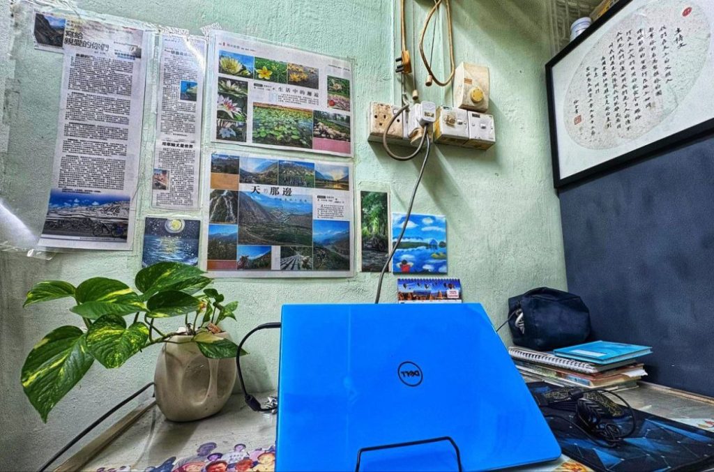 老书桌是我的工作台。桌面有一层玻璃,玻璃下方压着几张斑驳的家人照片及学生送的生日贺卡书签。叶片翠绿的绿萝自陶瓷茶壶探出身子来。桌上一本圣经及笔记本。清晨醒来,坐在书桌前灵修读经后祷告。拿出桌子右边角落笔记本上的电子血压测量仪,例常测量血压。将手提电脑搬去客厅边看视频边伸展运动。在家的时间几乎都待在工作台前。