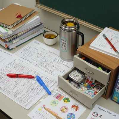 我的工作台在教室前方,那张褐色的木桌,陪伴我走过了15年的教学时光。