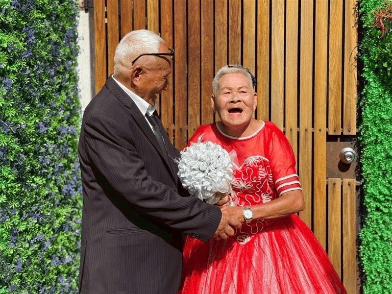 直到基金会帮忙圆梦,婚礼乐声响起时,林爷爷笑得像孩子般灿烂,深情告白:“很开心今天终于娶你了!不然拖了几十年,人家都以为我不负责任了。”